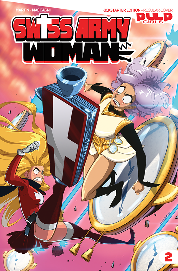 The first two issues of the new comic series from me and artist Monika Maccagni (Zombie Tramp, Vampblade) featuring the animated exploits of SWISS ARMY WOMAN - who has any weapon she needs for any job her nation requires... all attached to her right thigh!!