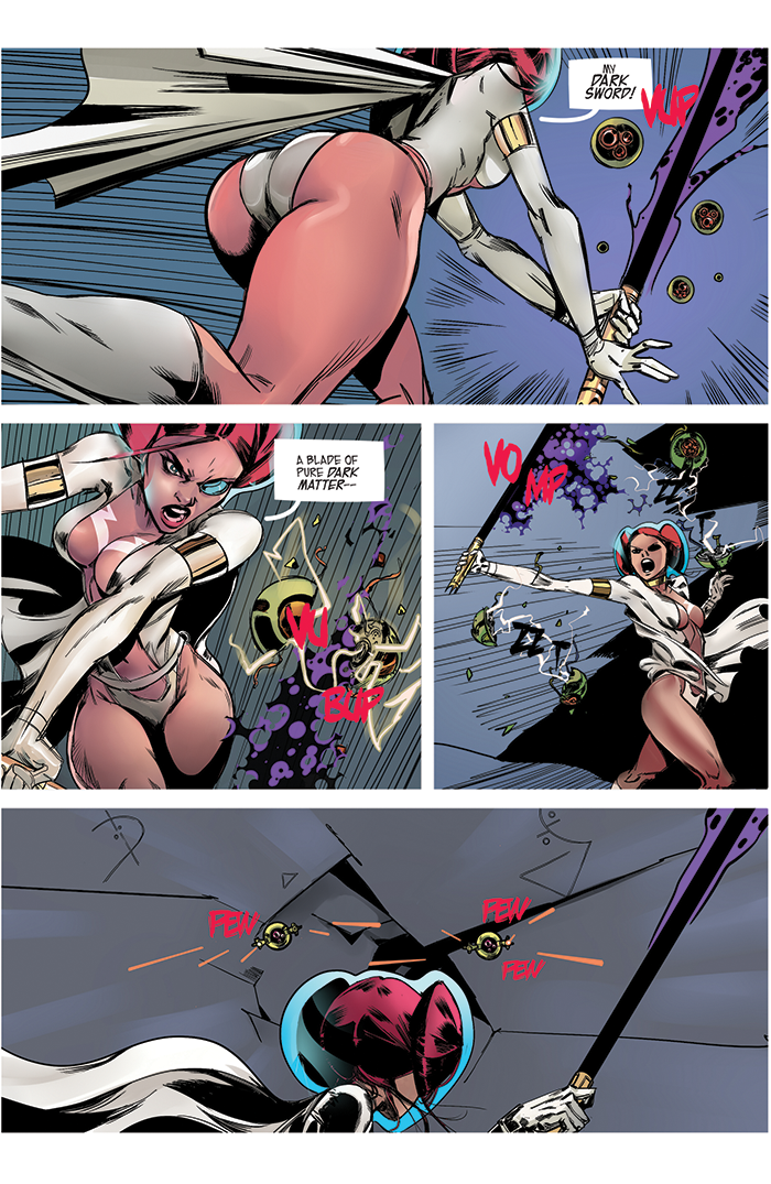 Prince-S STARthief is a blend of some familiar inspirations to create a full throttle science fiction adventure comic all its own. The black sheep of intergalactic corporate royalty, PRINCE-S steals crazy space $#!% with super cool sci-fi tech (like her black hole powered Dark Sword). Giving Turkish artist extraordinaire Celor a chance to showcase his amazing talents with an action-packed dip into this expansive new universe of fun.