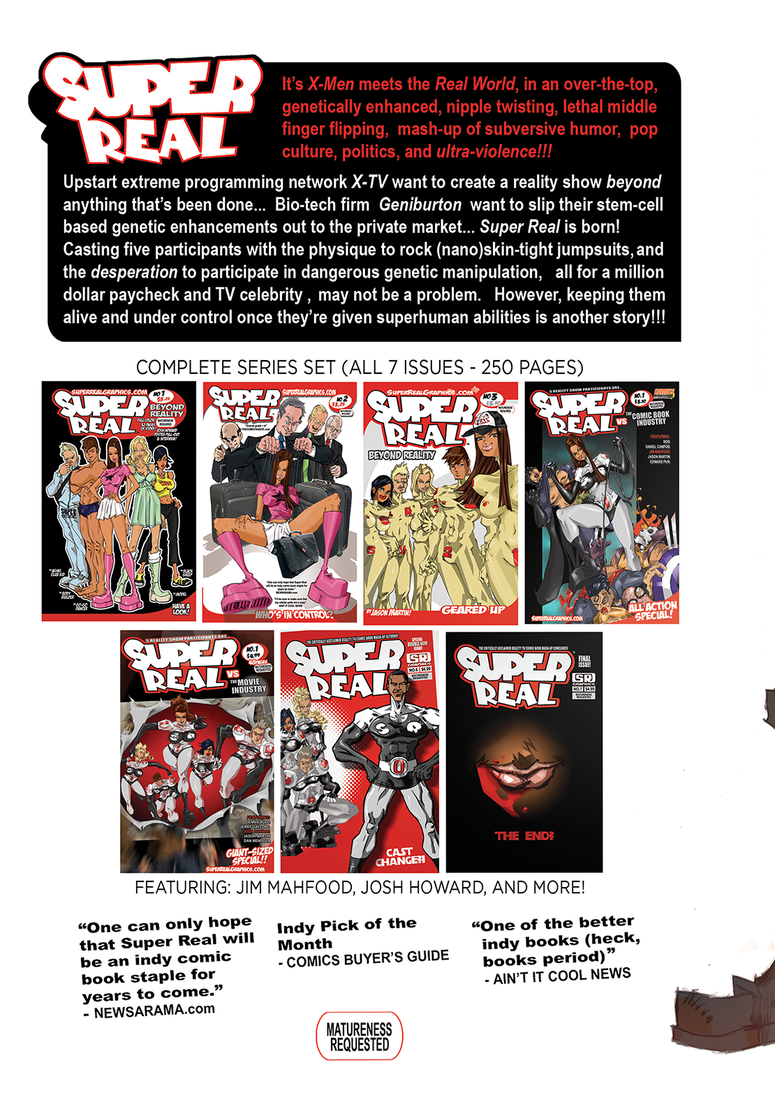 Super Real follows five people who sign million dollar contracts to get genetically enhanced for a reality show based on comic book superheroes. An over the top mash-up of reality TV and comic book fiction, like Survivor with superpowers, or The Real World meets The X-Men!